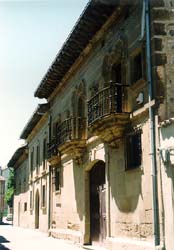![]() A lo largo de la calle Mayor se alinean numerosos edificios de notable interis arquitectsnico, como los que se aprecian en esta fotografma, junto con una arquitectura popular. En este caso llama la atencisn el acusado contraste entre las fachadas, casi lisas y austeras unas, mientras otra (la del palacio de los condes de Portalegre) presenta destacados elementos ornamentales, como los salientes balcones de la segunda planta y los voladizos en que se asientan, asm como las molduras que flanquean los vanos de salida o los mismos y el escudo heraldico que preside la fachada. |